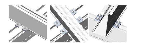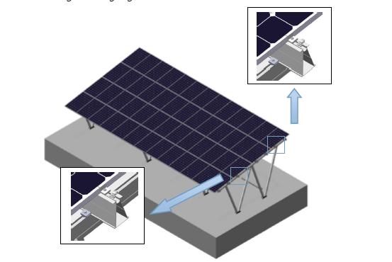 下の図に示すように、モジュールを1つずつ(左から右へ、下から上へ)配置します.端に50mmが予約されており、接地ラグの取り付けに使用できます.次に、ミッドクランプとエンドクランプを使用してモジュールを固定し、モジュールとレールがしっかりと閉じていることを確認します.