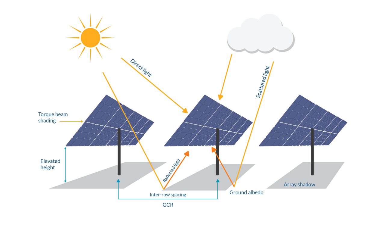 両面モジュールの発電ゲインは、表面アルベド.によって大まかに判断できます。両面ゲインに関連する主な変数は、表面アルベド,または地面から反射される日射量です(stull , 1988)。 .表面アルベドは、地域や地表,全体で、季節ごとに,、さらには1日中.でも大きな違いを示します。
