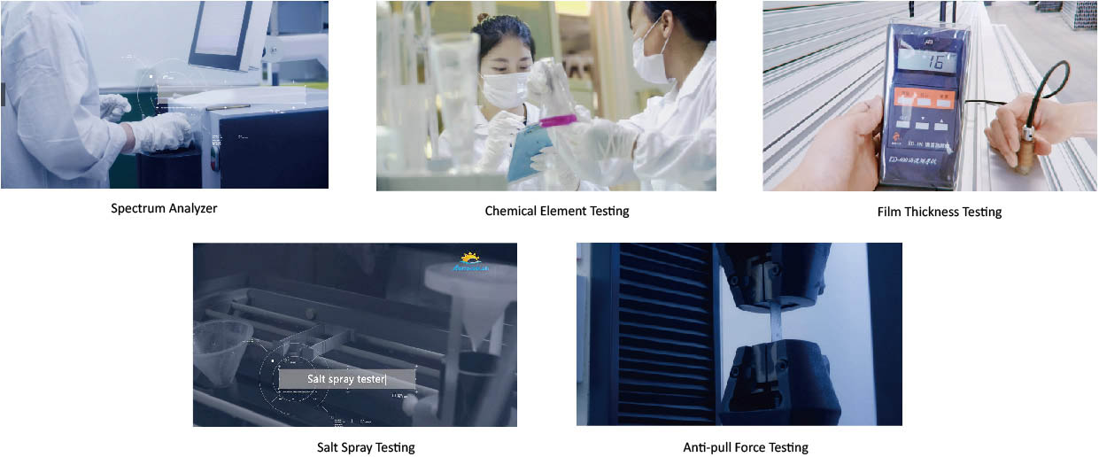 A クオリティ保証 システム用システム アルミニウム製品は高度な試験装置、優れた検査官と徹底的なものからなる。QC スペクトラムアナライザ、化学元素テスト、 の管理 a-pult 力試験、膜厚試験および塩水噴霧試験。